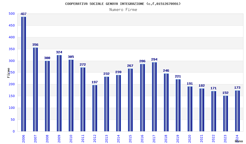 | Anno | Firme | Importi | Media | Naz. | Reg. | Prov. | Comu. |