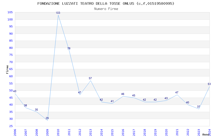 | Anno | Firme | Importi | Media | Naz. | Reg. | Prov. | Comu. |