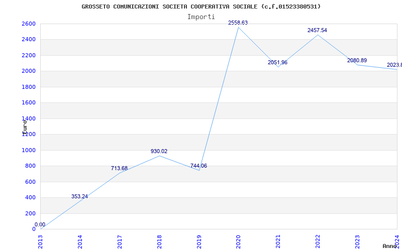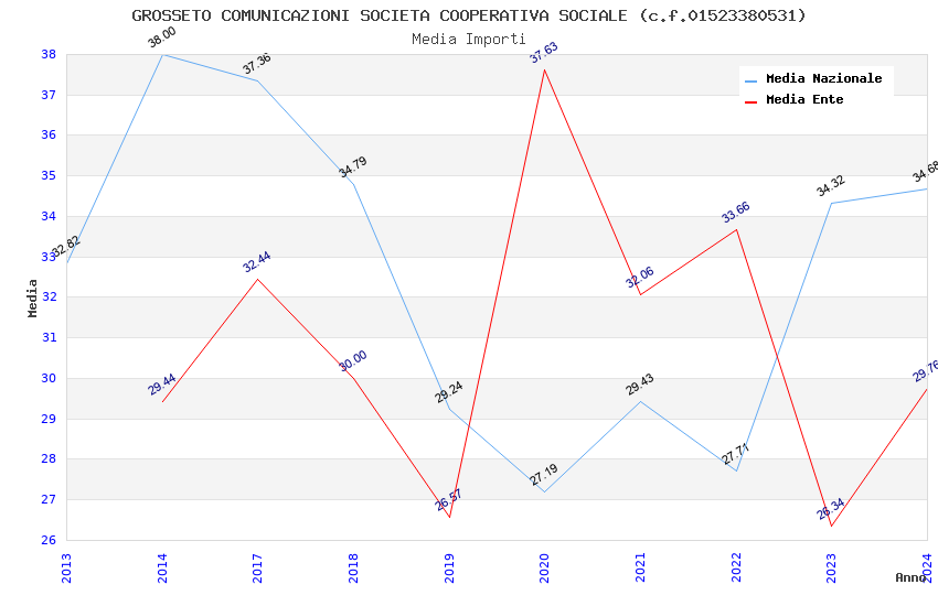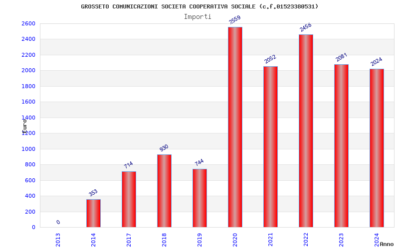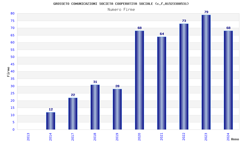 | Anno | Firme | Importi | Media | Naz. | Reg. | Prov. | Comu. |