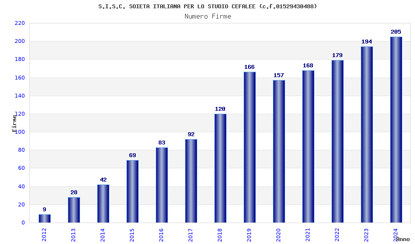 | Anno | Firme | Importi | Media | Naz. | Reg. | Prov. | Comu. |