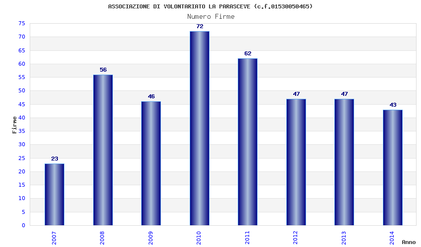 | Anno | Firme | Importi | Media | Naz. | Reg. | Prov. | Comu. |