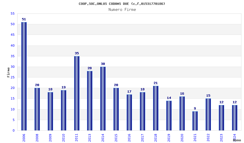 | Anno | Firme | Importi | Media | Naz. | Reg. | Prov. | Comu. |