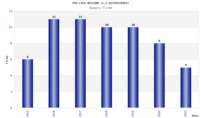 | Anno | Firme | Importi | Media | Naz. | Reg. | Prov. | Comu. |