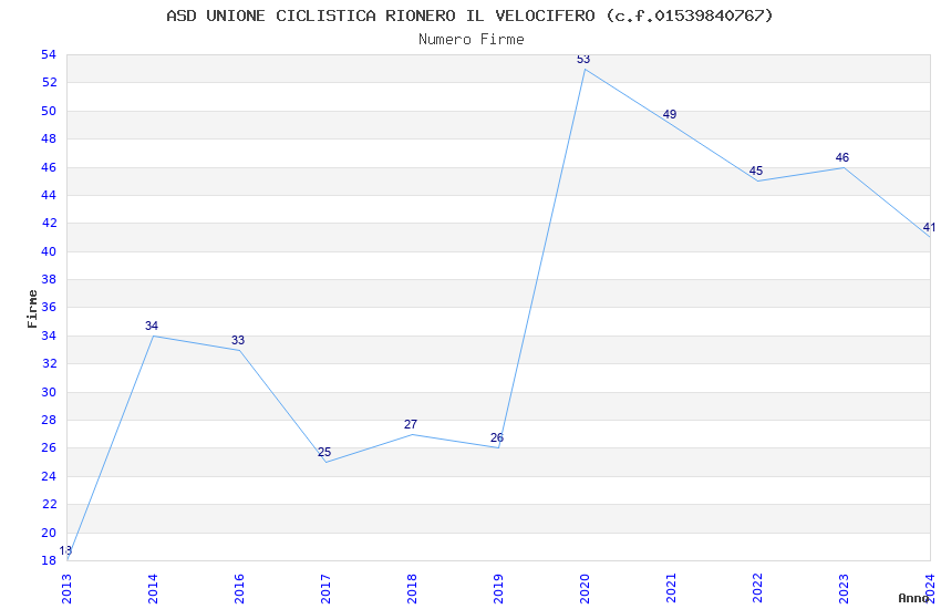 | 2024 | 41 | 1.353,32 | 33,01 | 31.486 | 244 | 174 | 10 |