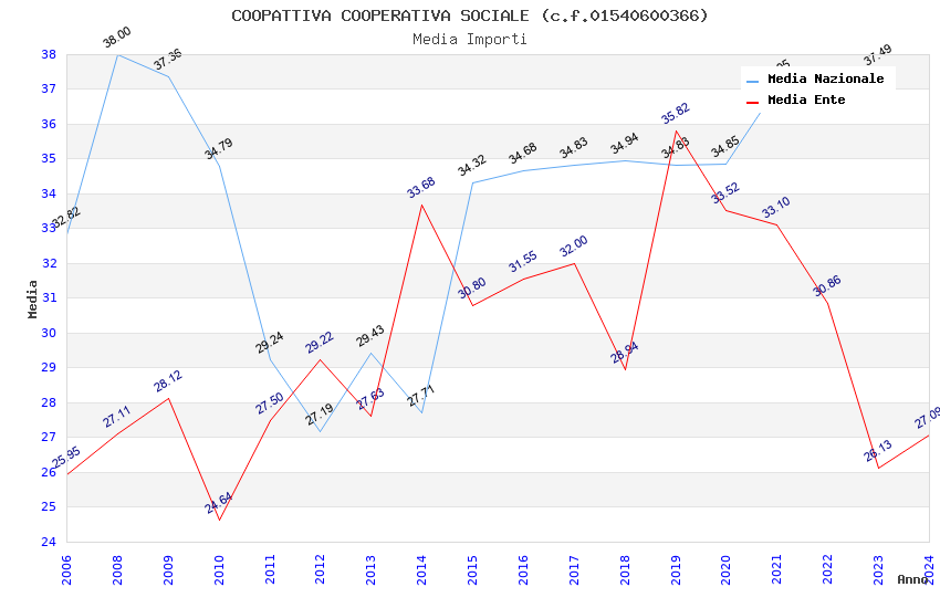 | Anno | Firme | Importi | Media | Naz. | Reg. | Prov. | Comu. |