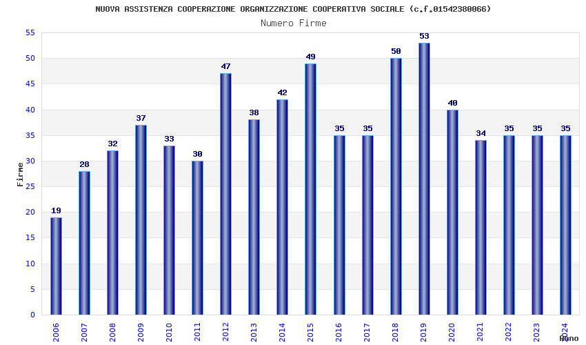| 2019 | 53 | 1.312,75 | 24,77 | 30.974 | 2.512 | 209 | 1 |