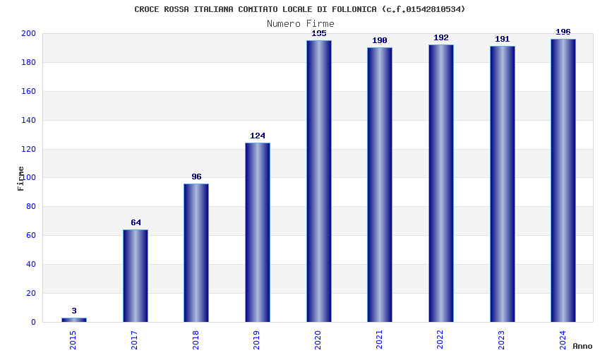 | Anno | Firme | Importi | Media | Naz. | Reg. | Prov. | Comu. |