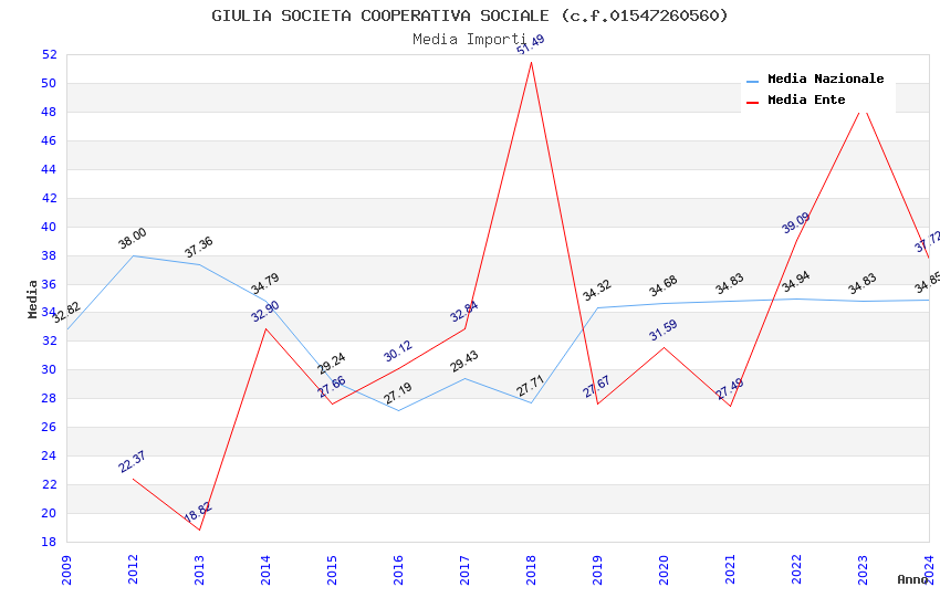 | Anno | Firme | Importi | Media | Naz. | Reg. | Prov. | Comu. |