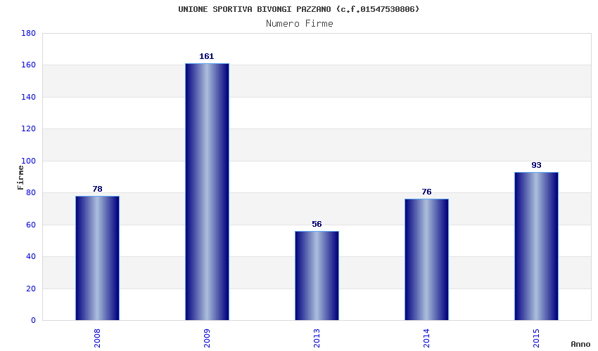 | Anno | Firme | Importi | Media | Naz. | Reg. | Prov. | Comu. |
