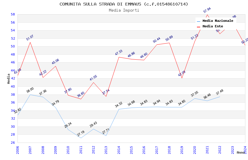 | Anno | Firme | Importi | Media | Naz. | Reg. | Prov. | Comu. |