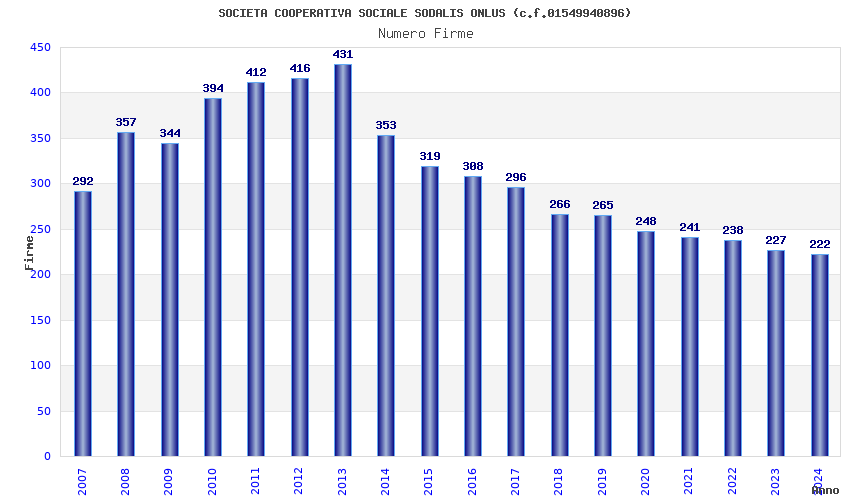 | 2013 | 431 | 9.697,40 | 22,50 | 4.191 | 191 | 14 | 8 |