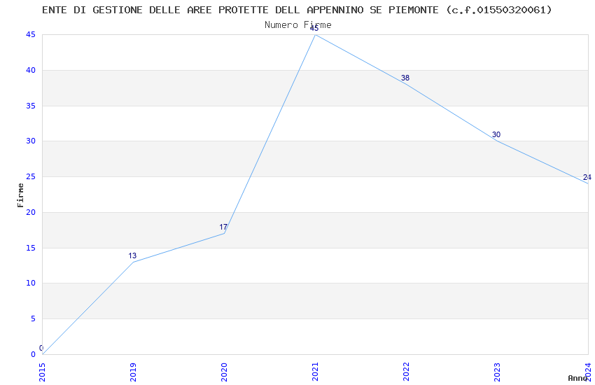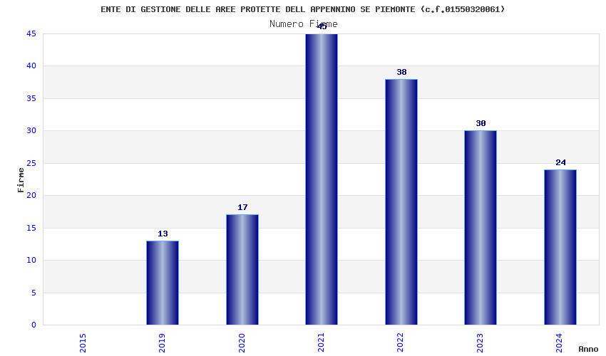 | Anno | Firme | Importi | Media | Naz. | Reg. | Prov. | Comu. |