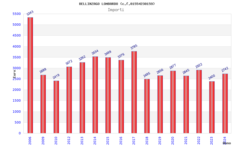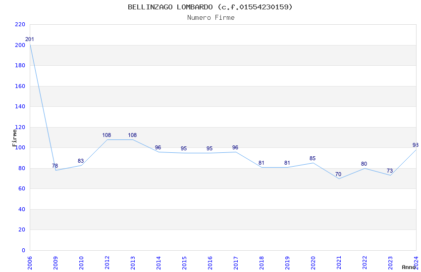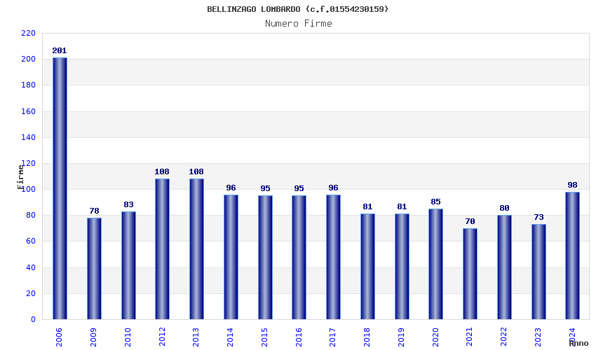 | Anno | Firme | Importi | Media | Naz. | Reg. | Prov. | Comu. |