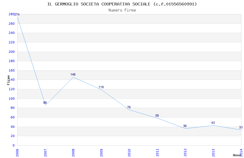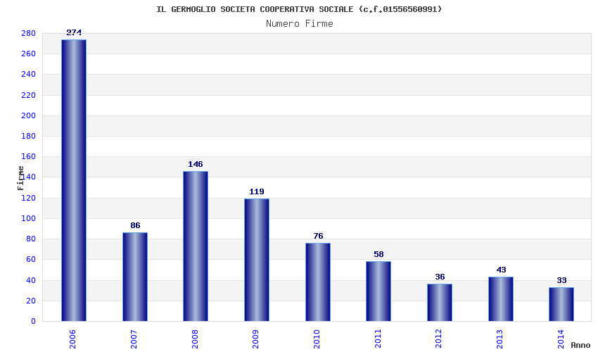 | Anno | Firme | Importi | Media | Naz. | Reg. | Prov. | Comu. |