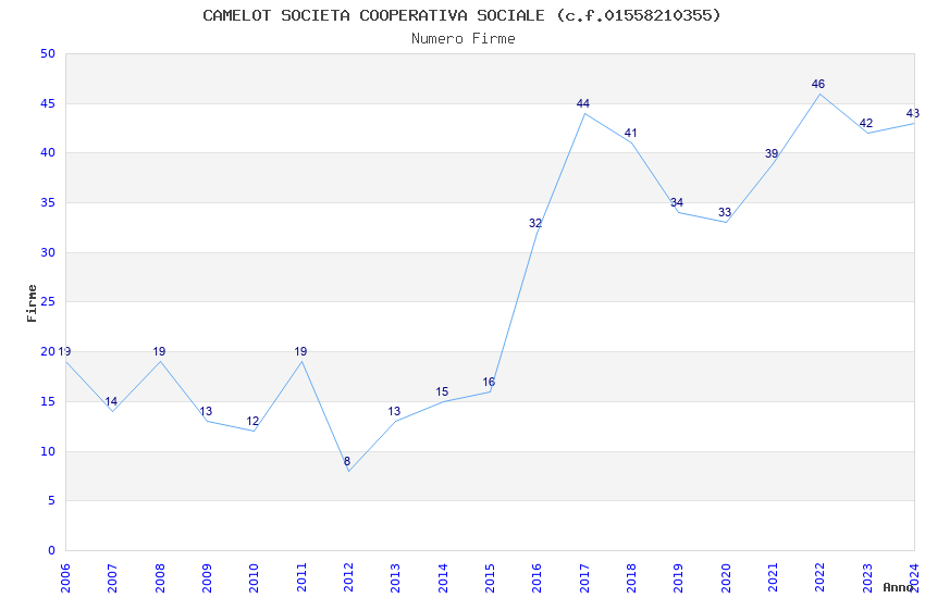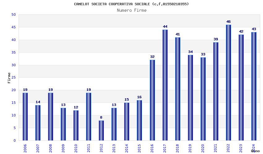 | Anno | Firme | Importi | Media | Naz. | Reg. | Prov. | Comu. |
