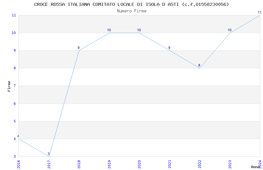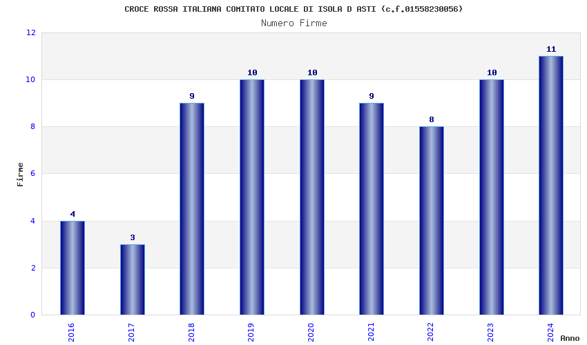 | Anno | Firme | Importi | Media | Naz. | Reg. | Prov. | Comu. |