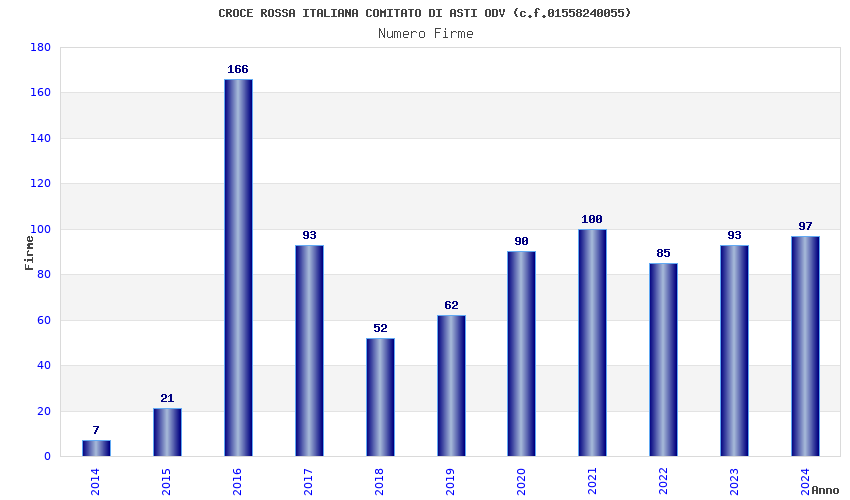 | Anno | Firme | Importi | Media | Naz. | Reg. | Prov. | Comu. |