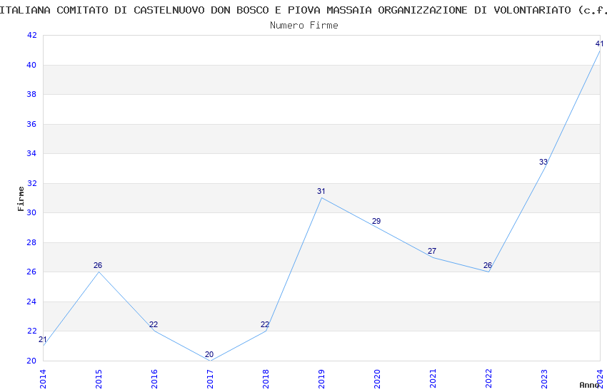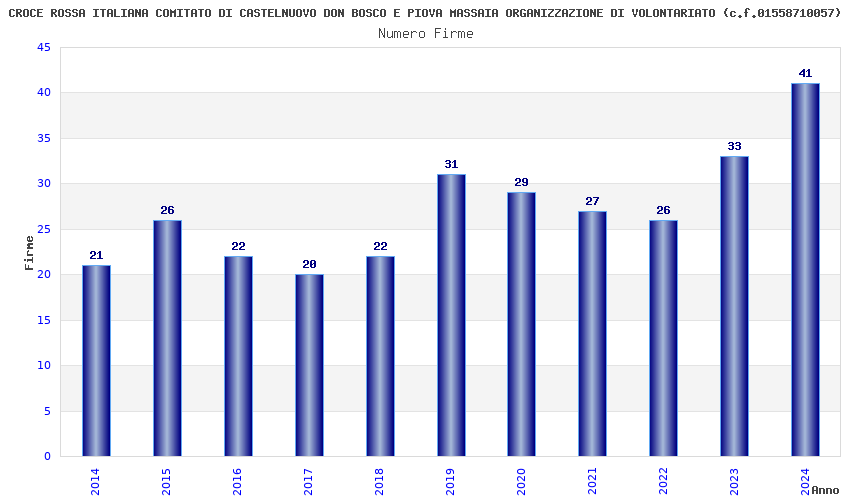 | Anno | Firme | Importi | Media | Naz. | Reg. | Prov. | Comu. |