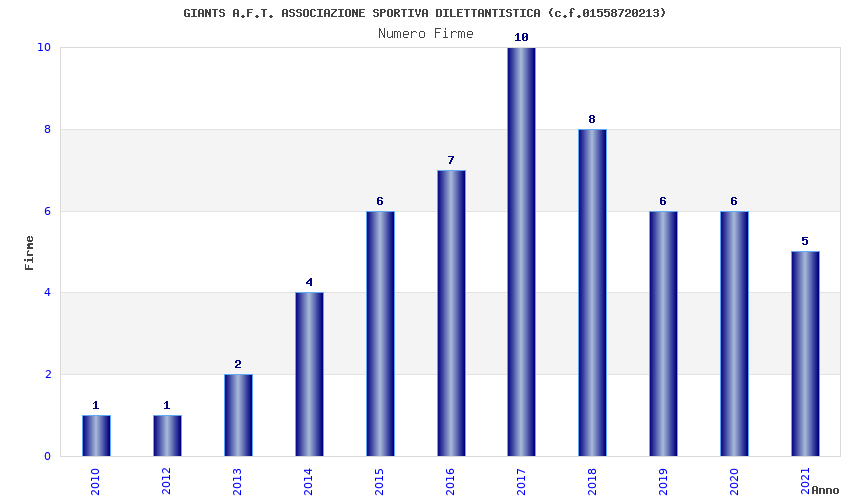 | Anno | Firme | Importi | Media | Naz. | Reg. | Prov. | Comu. |