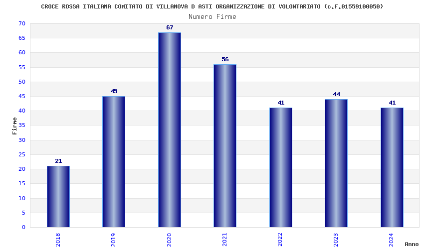 | Anno | Firme | Importi | Media | Naz. | Reg. | Prov. | Comu. |