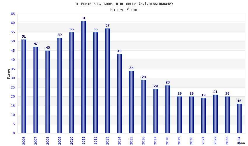 | Anno | Firme | Importi | Media | Naz. | Reg. | Prov. | Comu. |
