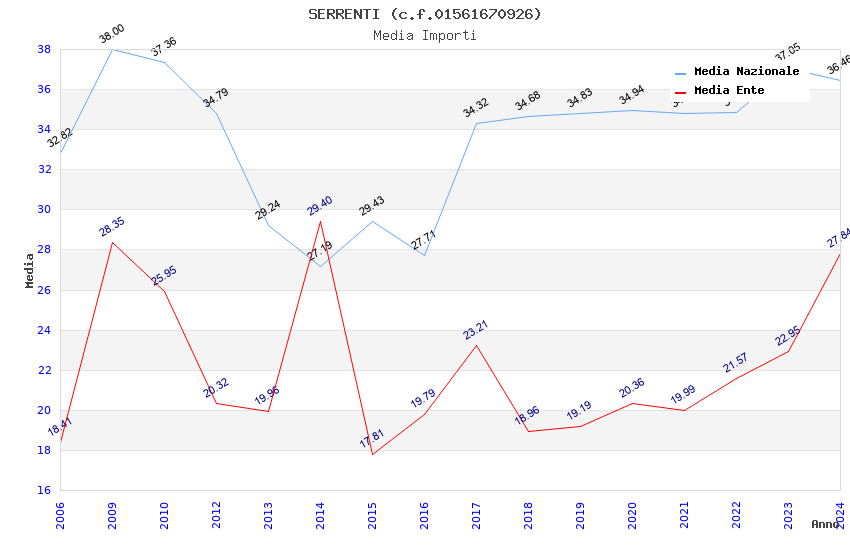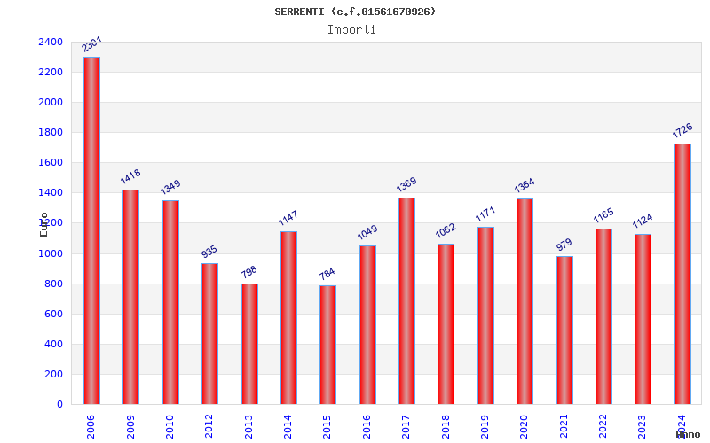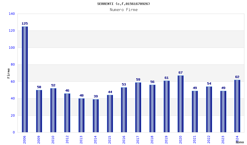 | Anno | Firme | Importi | Media | Naz. | Reg. | Prov. | Comu. |