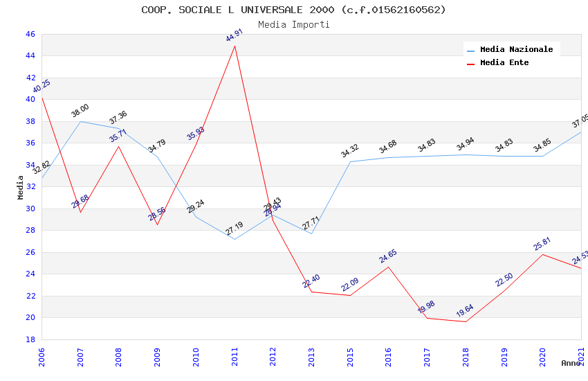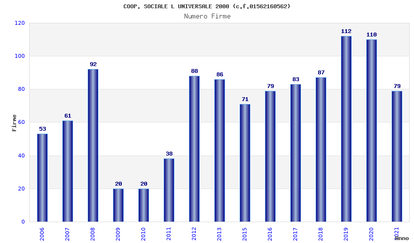 | Anno | Firme | Importi | Media | Naz. | Reg. | Prov. | Comu. |