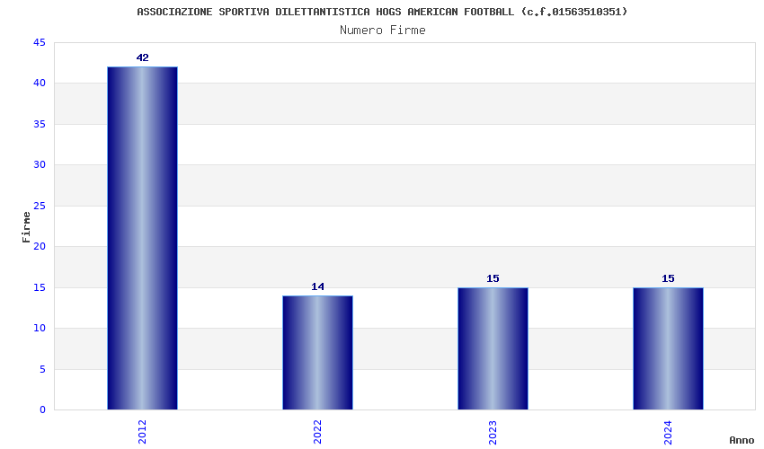 | Anno | Firme | Importi | Media | Naz. | Reg. | Prov. | Comu. |