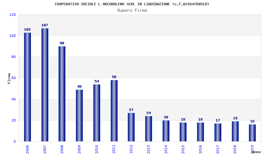 | Anno | Firme | Importi | Media | Naz. | Reg. | Prov. | Comu. |