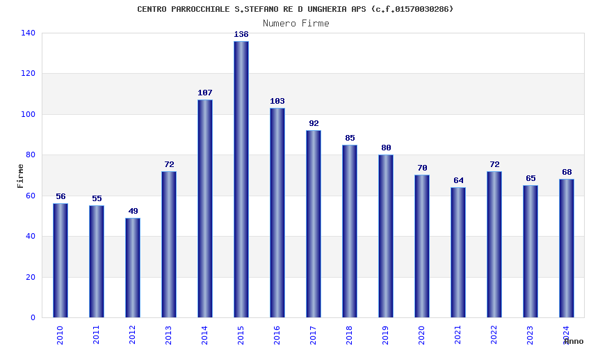 | Anno | Firme | Importi | Media | Naz. | Reg. | Prov. | Comu. |