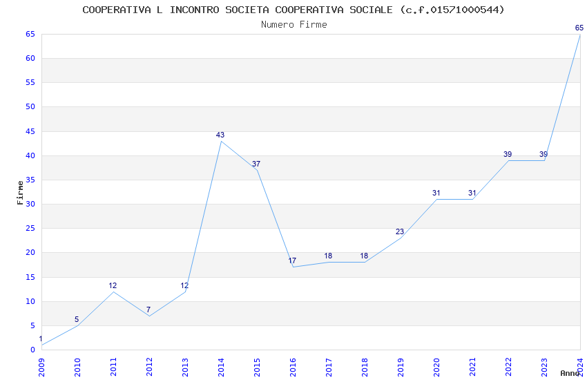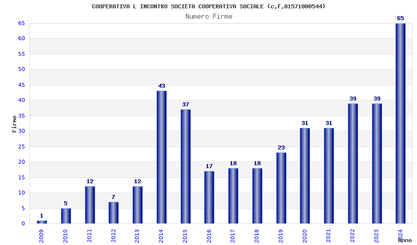 | Anno | Firme | Importi | Media | Naz. | Reg. | Prov. | Comu. |