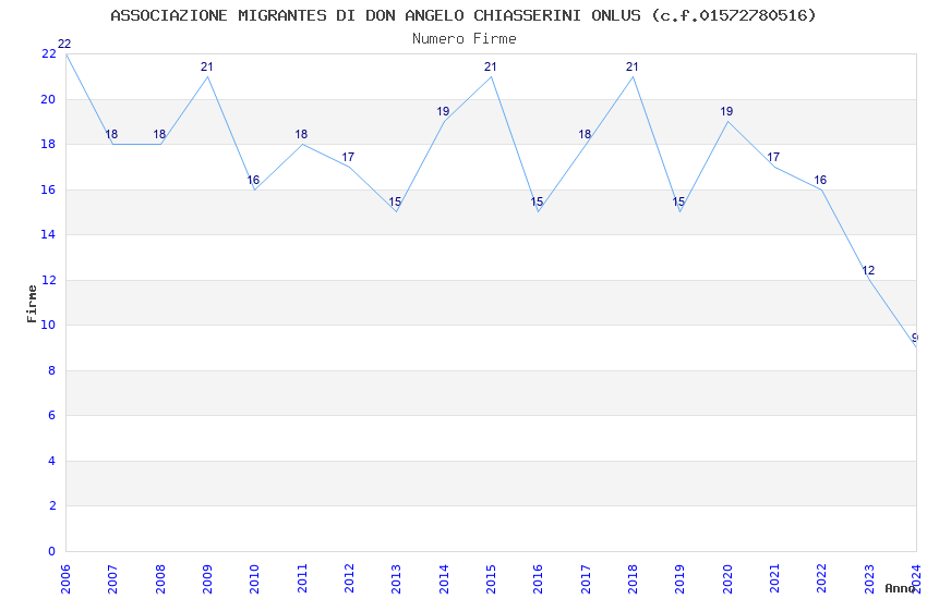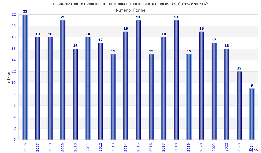 | Anno | Firme | Importi | Media | Naz. | Reg. | Prov. | Comu. |