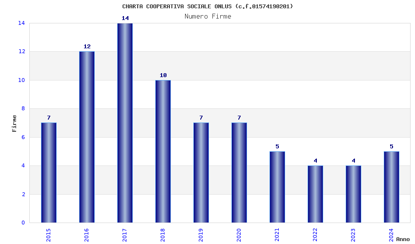 | Anno | Firme | Importi | Media | Naz. | Reg. | Prov. | Comu. |