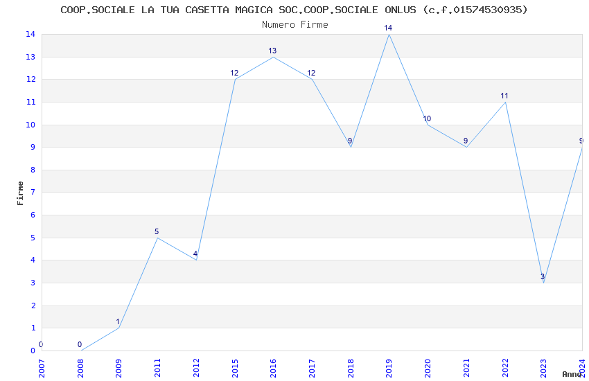 | 2019 | 14 | 266,59 | 19,04 | 52.873 | 1.560 | 348 | 10 |