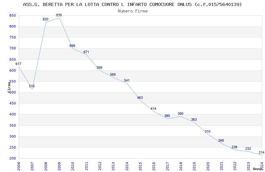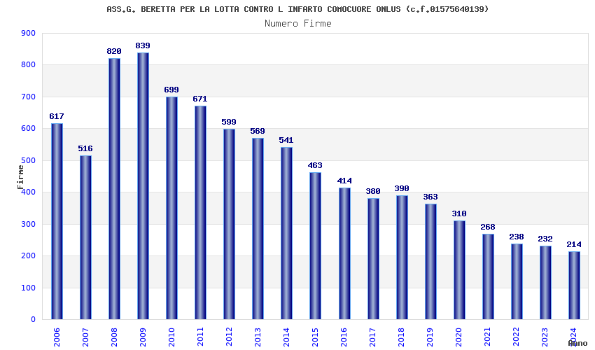 | Anno | Firme | Importi | Media | Naz. | Reg. | Prov. | Comu. |