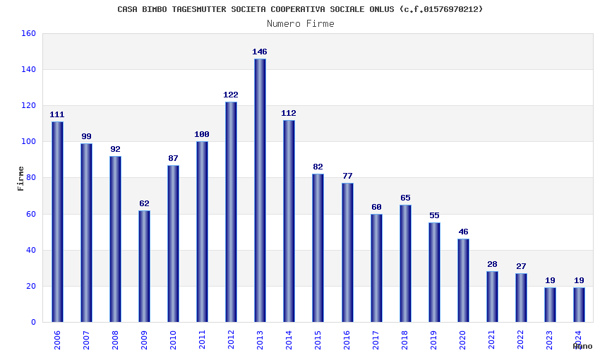 | Anno | Firme | Importi | Media | Naz. | Reg. | Prov. | Comu. |