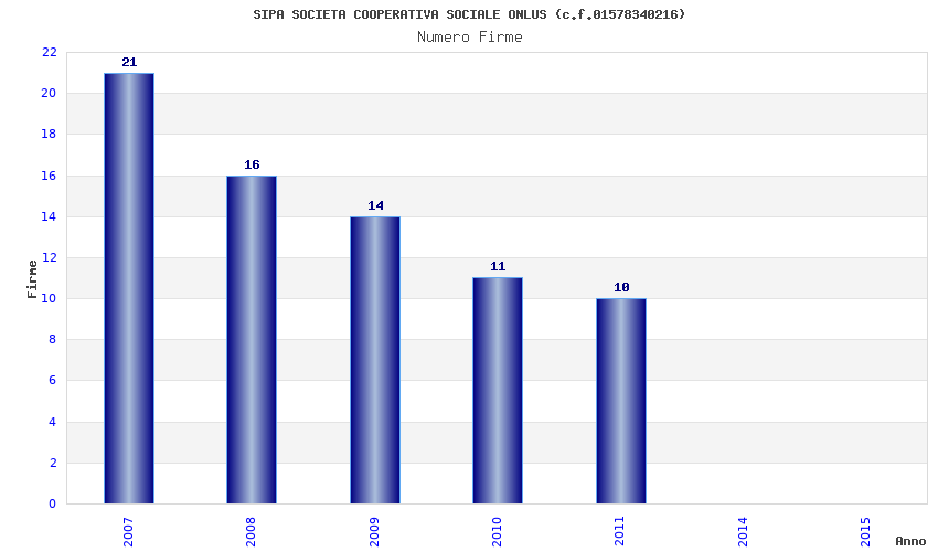 | Anno | Firme | Importi | Media | Naz. | Reg. | Prov. | Comu. |