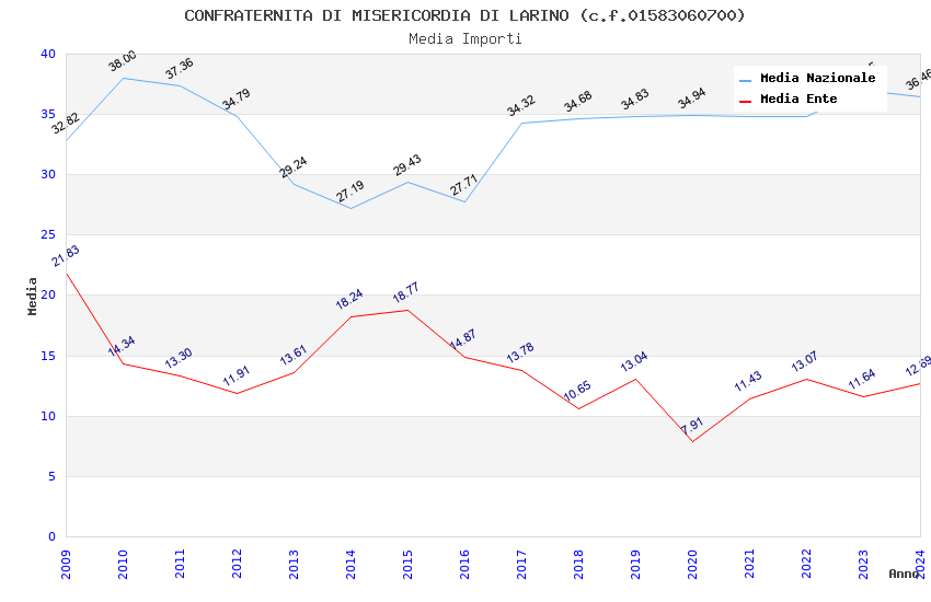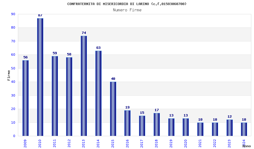| Anno | Firme | Importi | Media | Naz. | Reg. | Prov. | Comu. |