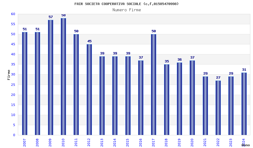 | Anno | Firme | Importi | Media | Naz. | Reg. | Prov. | Comu. |
