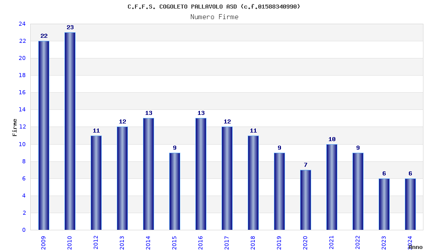 | Anno | Firme | Importi | Media | Naz. | Reg. | Prov. | Comu. |