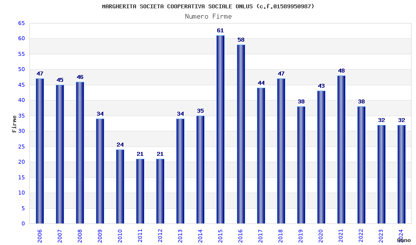 | Anno | Firme | Importi | Media | Naz. | Reg. | Prov. | Comu. |