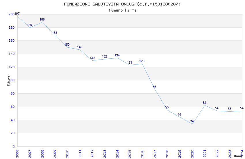 | Anno | Firme | Importi | Media | Naz. | Reg. | Prov. | Comu. |