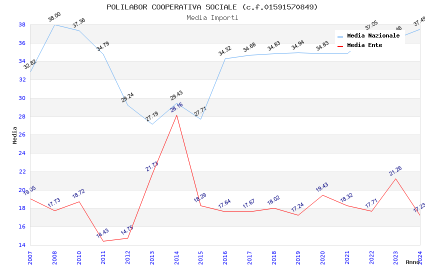 | Anno | Firme | Importi | Media | Naz. | Reg. | Prov. | Comu. |