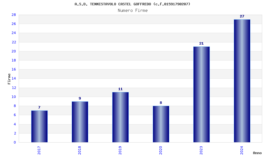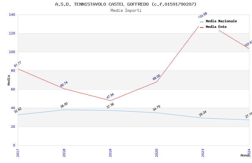 | Anno | Firme | Importi | Media | Naz. | Reg. | Prov. | Comu. |