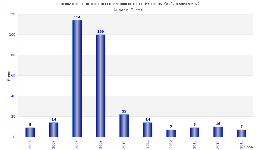 | Anno | Firme | Importi | Media | Naz. | Reg. | Prov. | Comu. |