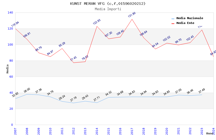 | Anno | Firme | Importi | Media | Naz. | Reg. | Prov. | Comu. |