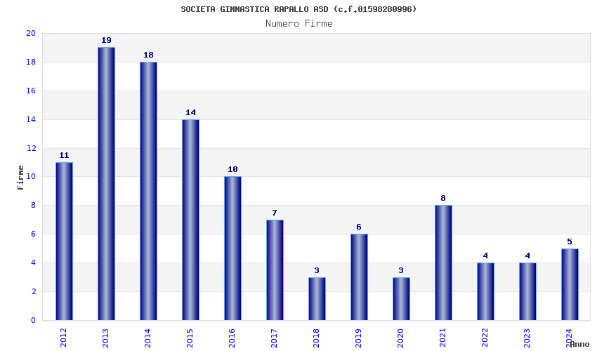 | Anno | Firme | Importi | Media | Naz. | Reg. | Prov. | Comu. |