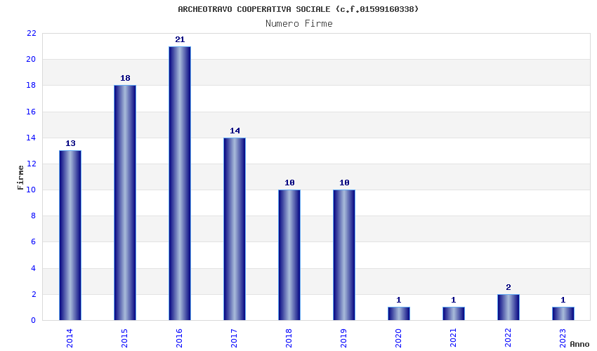 | Anno | Firme | Importi | Media | Naz. | Reg. | Prov. | Comu. |