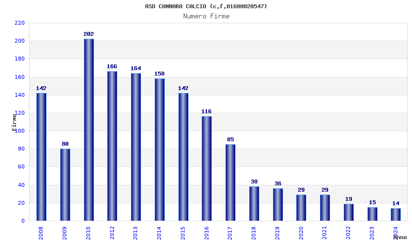 | 2014 | 158 | 3.694,99 | 23,39 | 14.121 | 203 | 160 | 1 |