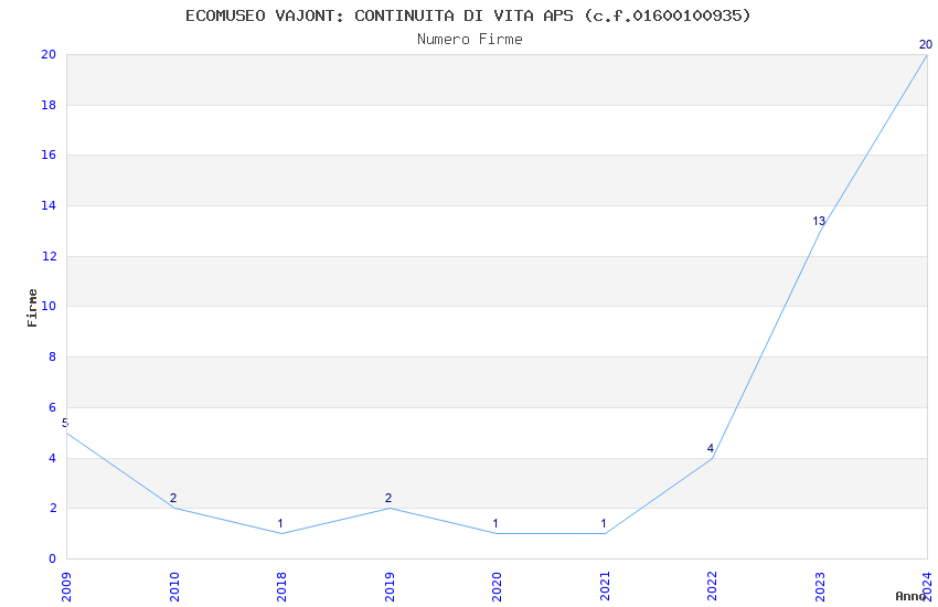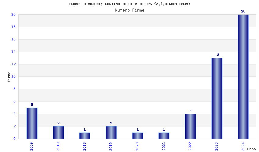 | Anno | Firme | Importi | Media | Naz. | Reg. | Prov. | Comu. |